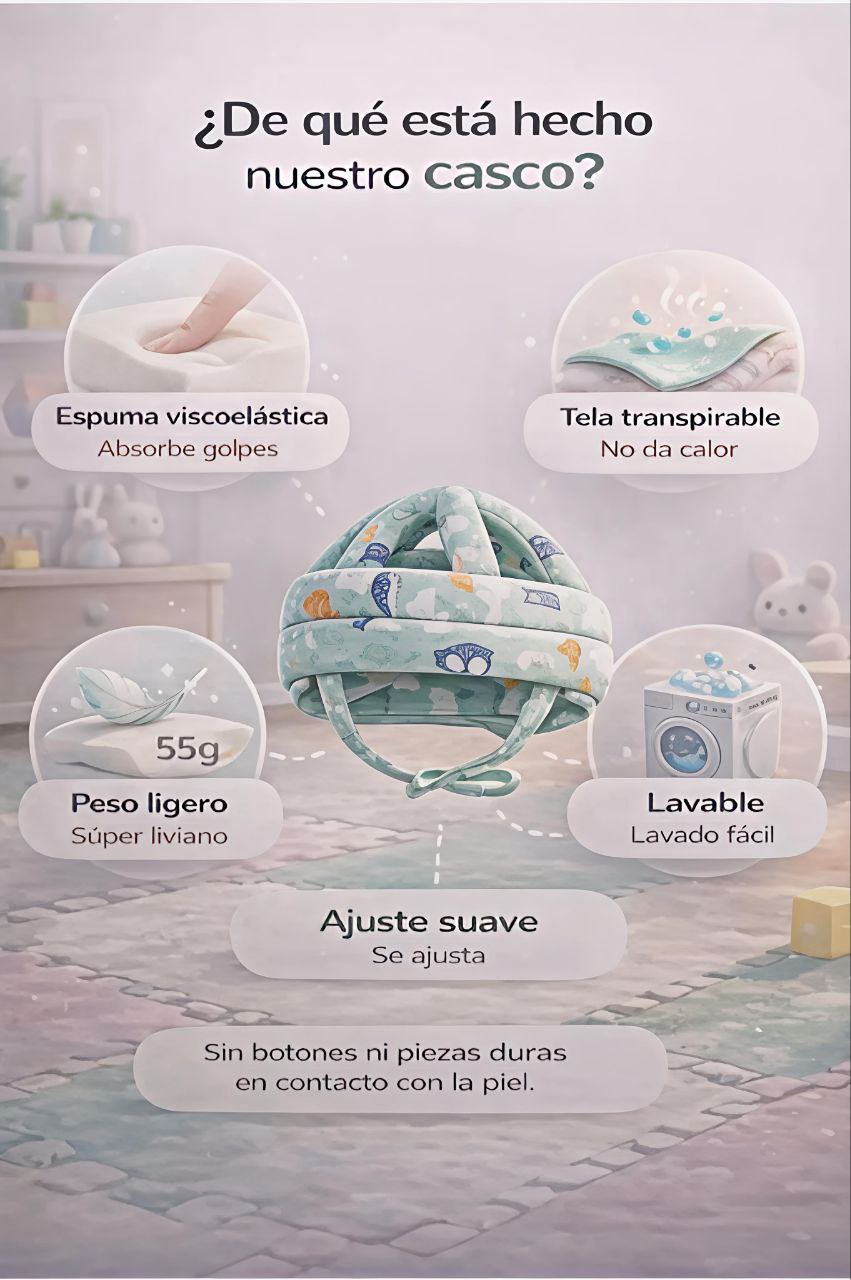 ✔ Prevención de Lesiones: Ayuda a prevenir lesiones en la cabeza durante las etapas de gateo y aprendizaje a caminar.