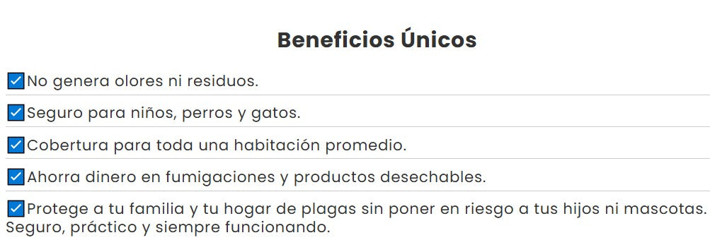 Protege a tu familia y tu hogar de plagas sin poner en riesgo a tus hijos ni mascotas. Seguro, práctico y siempre funcionando.